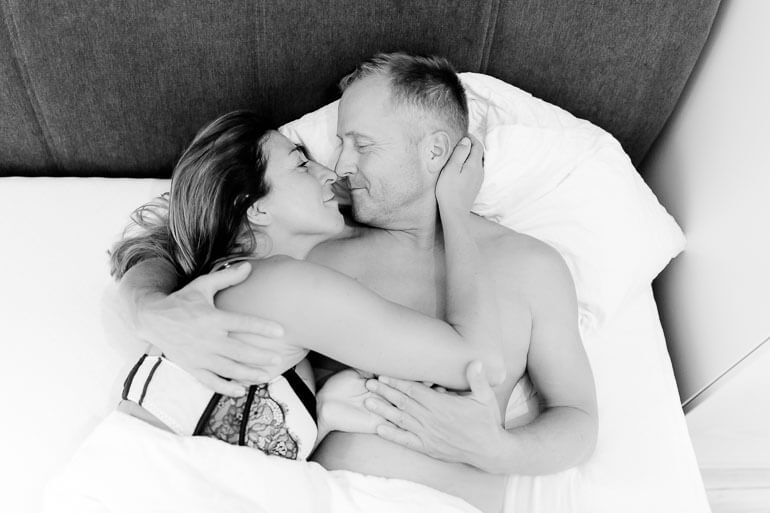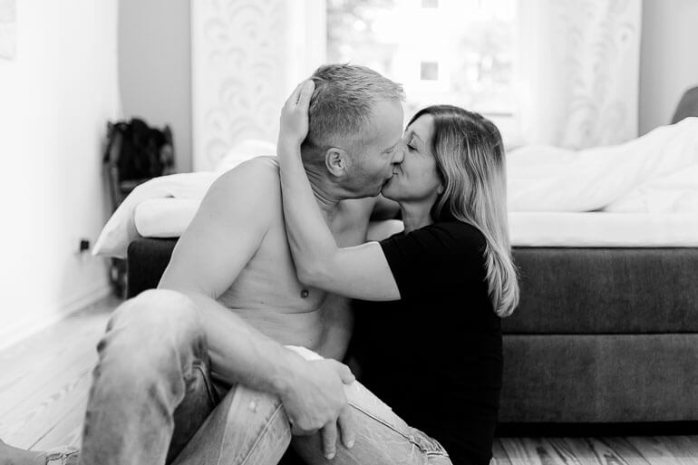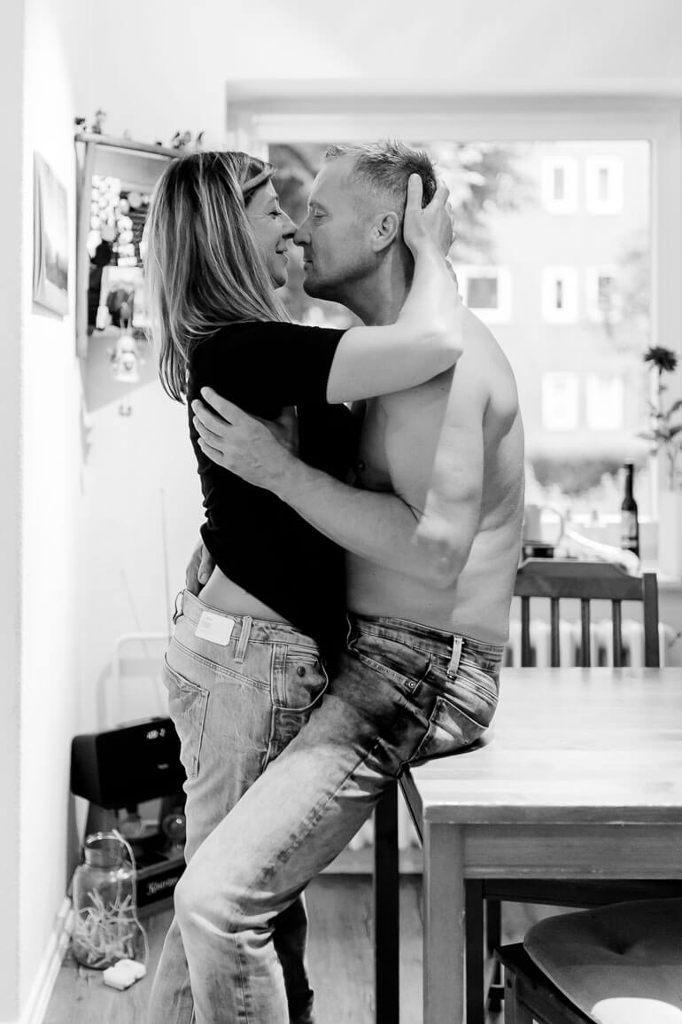 “Hallo Britta, wir möchten uns zu unserem 1. Hochzeitstag ein Foto-Shooting bei dir schenken!” – Ein Jahr zuvor habe ich die Hochzeit von Anke und Peter fotografiert und nun wollten sie gern ein Paar-Shooting machen. Es sollte kein normales Shooting sein, sie würden gern etwas mehr Haut zeigen. Es sollte also ein Boudoir-Shooting bei ihnen zu Hause werden. So entstand die Paarboudoir Homestory in der Küche, im Wohnzimmer einem Glas Weis und im Schlafzimmer der beiden. Sehr sinnlich schaut es aus und man kann auf den Fotos nicht sehen, dass wir unfassbar viel gelacht haben dabei. Dieses Foto-Shooting hat so viel Spaß gemacht und man sieht, wie lieb die zwei sich haben.